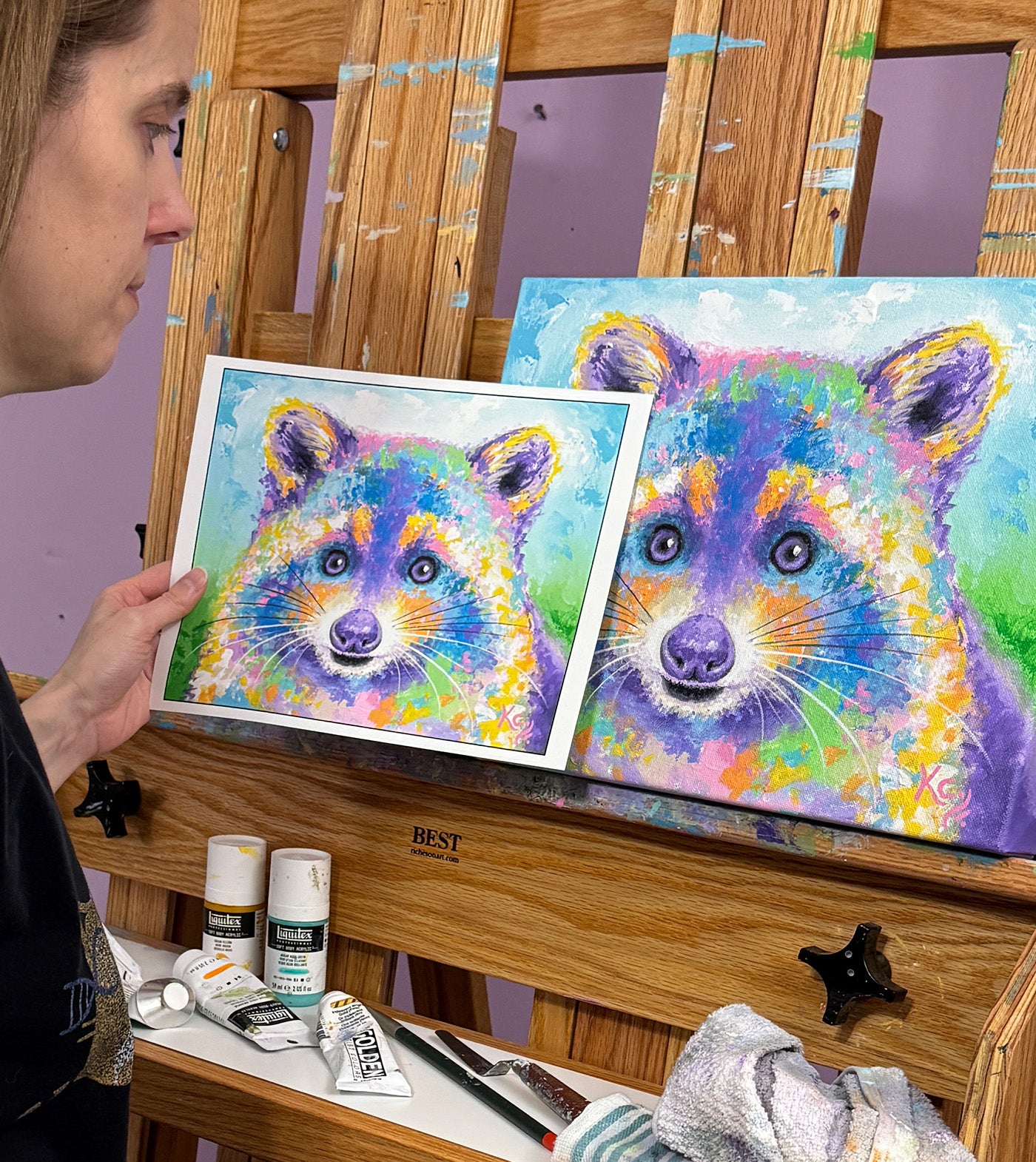 I painted each of them in acrylics on professional grade gallery wrapped canvases at 11x14 or 12x12 inches, offering a more accessible size for collectors. These smaller dimensions make it possible to enjoy original art at a more affordable price. I believe art should be for everyone, which is why I strive to keep my prices fair. My goal is to make it possible for anyone who loves art to own an original piece. I hope my paintings bring a sense of joy and connection to animals into your home!