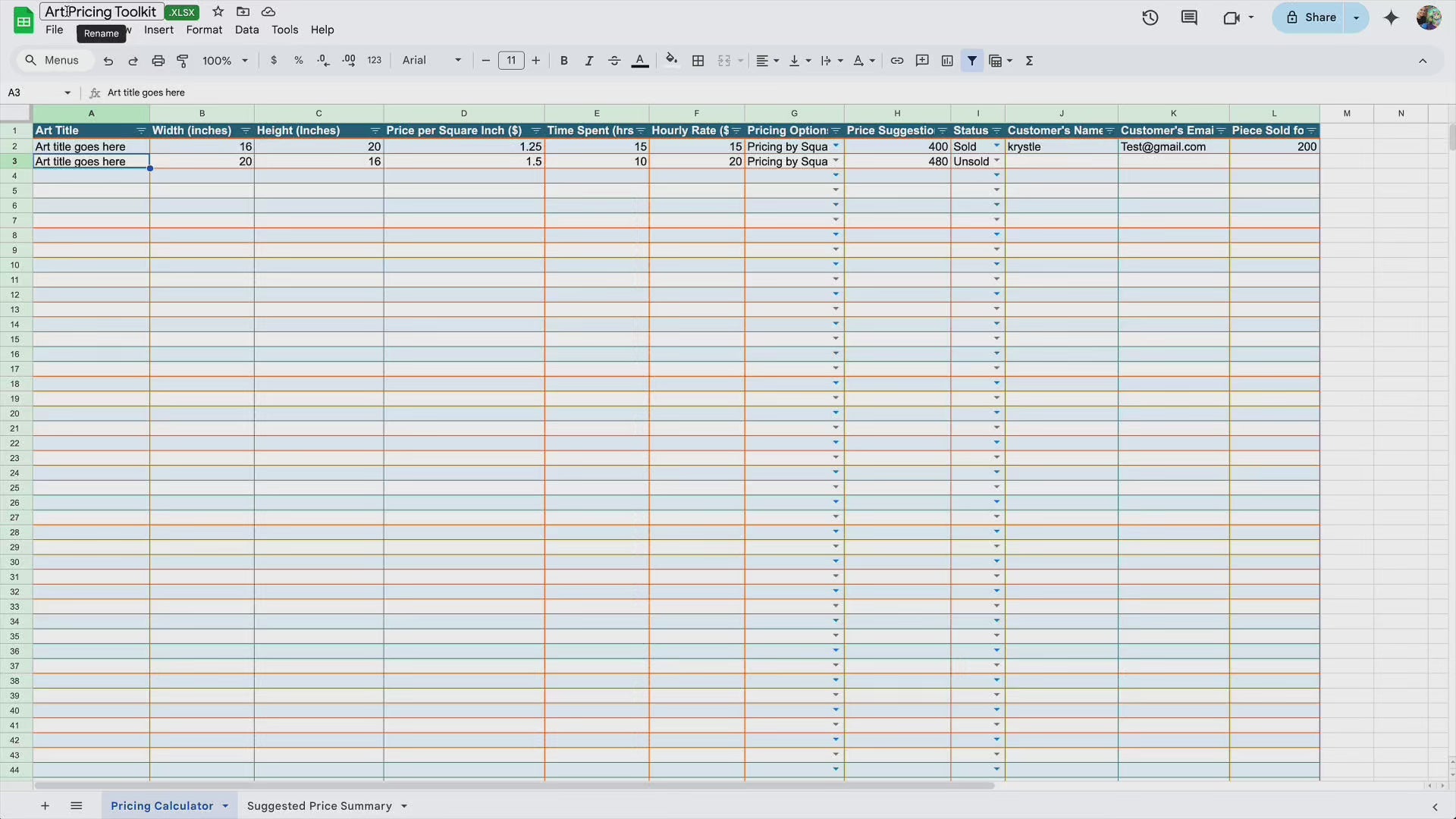Are you tired of guessing how to price your artwork? Do you struggle with staying organized and tracking sales? With my Art Pricing Toolkit, you can easily calculate accurate pricing and keep track of your original artwork inventory, all while organizing your collectors' contact details to follow up with them for future purchases.