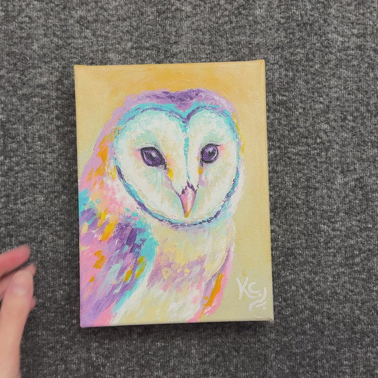 This is an original acrylic painting entitled Barn Owl, painted in 2026. It is signed on the front and back, and it is ready to hang.