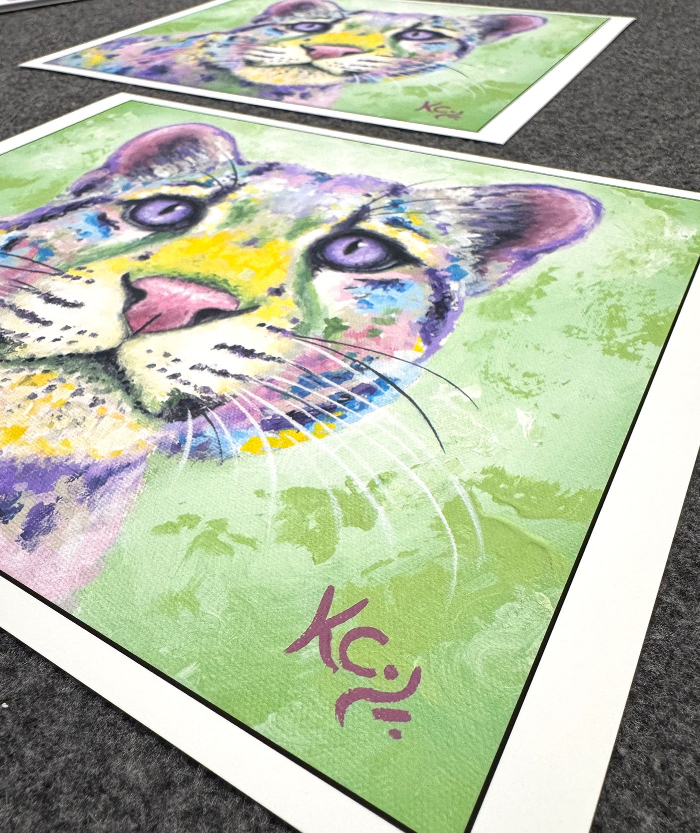 I print on Epson Surecolor professional grade printers in my home studio with archival Epson ultrachrome pigment based inks. I ensure print colors are vibrant and everything looks purr-fect :)