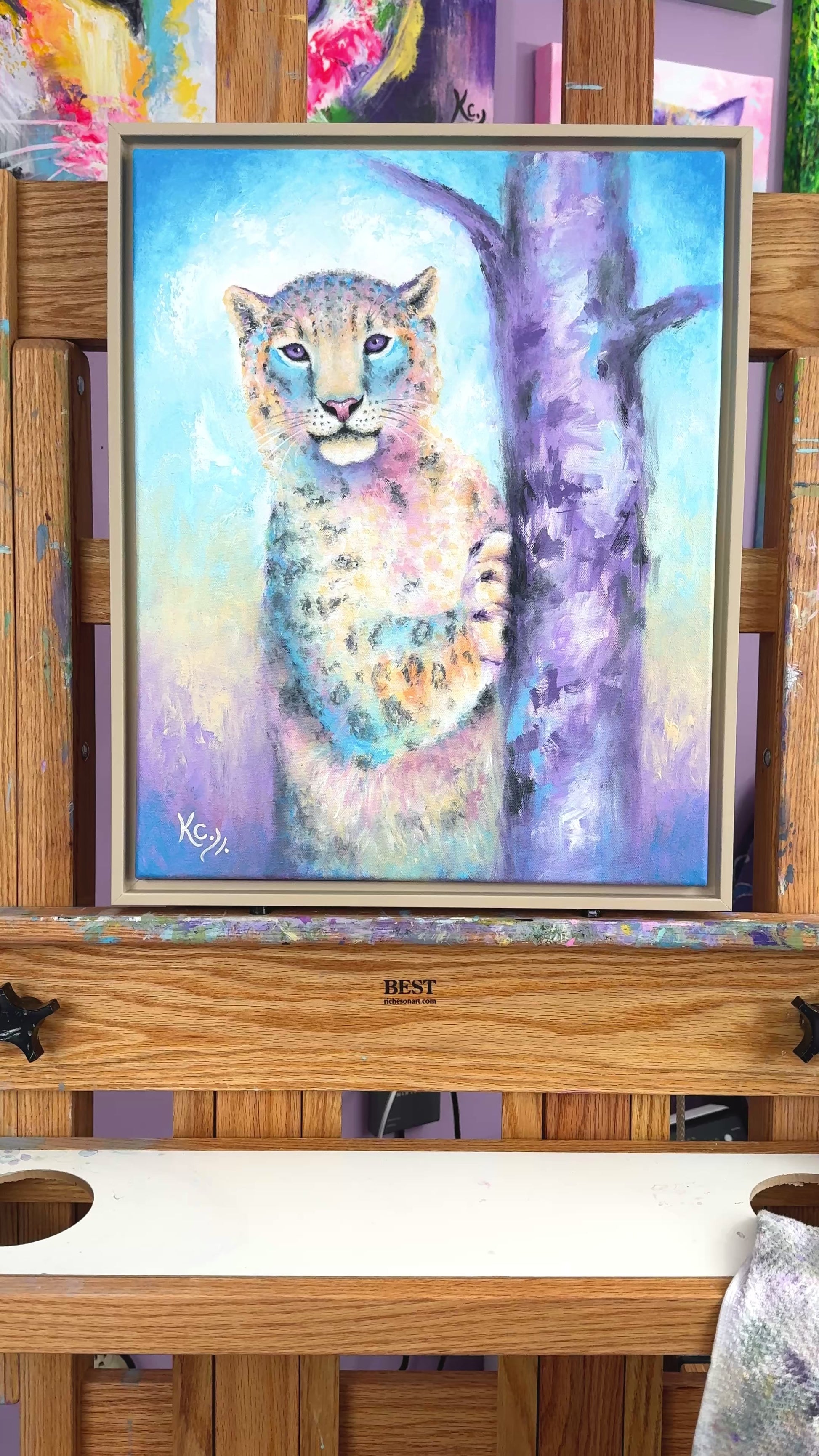 Original snow leopard painting I created in 2022 entitled "Scratching Post". It is a portrait of a beautiful Snow Leopard from the Tanganyika Wildlife Park in Goddard, KS.