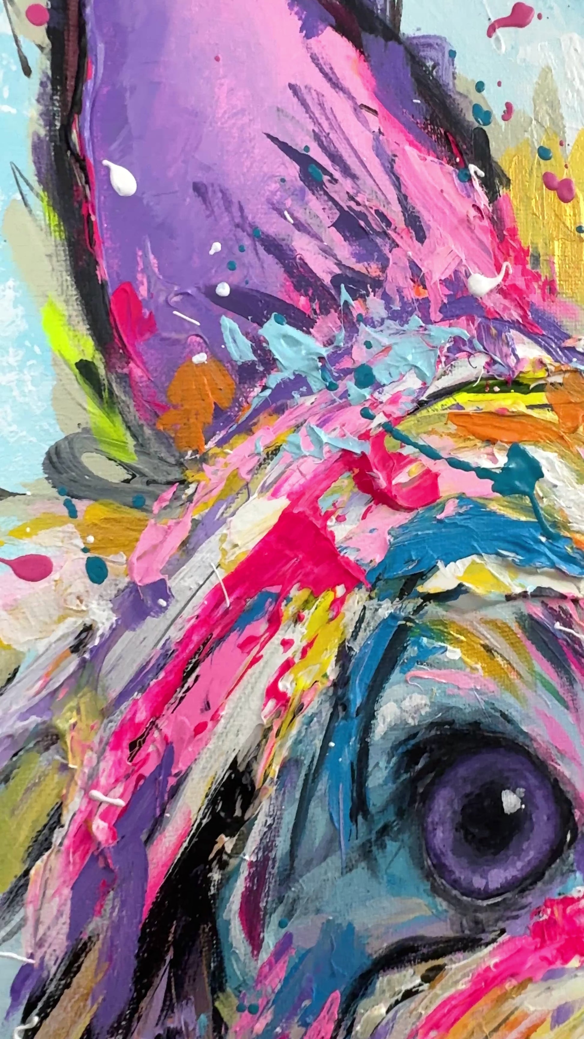 This is an original dog painting I created of an adorable little yorkie! The painting is titled Yorkie Playtime, and it is bursting with happy colors! It also has lots of impasto textures. Make sure to check out the video to see the textures up close :)